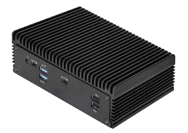 Lüfterloser Embedded-PC mit Intel Core i3-1115G4E (Tiger Lake, 11. Gen), DDR4-3200-Speicher bis 64 GB, Thunderbolt 4, Quad-Display, 1x 1G-LAN und 1x 2,5G-LAN. Abmessung: 171,8 x 109,45 x 50,05 mm.