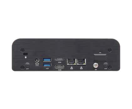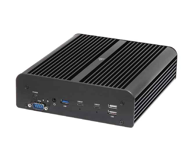 Leistungsstarker lüfterloser Embedded-PC mit Intel Core Ultra 7 255H (Arrow Lake-H), DDR5-6400-Speicher bis 96 GB, Thunderbolt 4, Quad-Display, 2x 2,5G-LAN und optionaler OOB-Fernsteuerung. Abmessung: 200 x 176,6 x 53,6 mm.