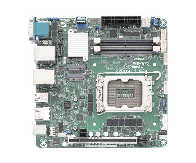Das ASRock Industrial IMB-1246 ist ein zukunftsweisendes Mini-ITX Mainboard (17 x 17 x 3,6 cm) mit Intel H810 Chipsatz und Intel Core Ultra Serie 2 Prozessoren (Arrow Lake-S, LGA1851, bis 65 W). Es unterstützt bis zu 128 GB Dual-Channel-DDR5-RAM (5600/6400 MHz) über zwei SO-DIMM-Slots. Konnektivitäts-Highlights: PCIe x16 Gen5, USB4/Thunderbolt™ 4 (5V/3A, mit DP 2.1), 2x USB 3.2 Gen2, 2x USB 3.2 Gen1, 4x USB 2.0, M.2 Key E, M.2 Key M (PCIe Gen4 x4) sowie 2x SATA3. Triple-Display über 2x HDMI 2.1 (bis 8K@60Hz), DisplayPort 2.1 via Type-C und LVDS/eDP. Realtek RTL8125BG (2,5 GbE) + Intel I219V (1 GbE), 4 COM-Anschlüsse, GPIO und Intel PTT als TPM-Lösung. Standard-ATX-Stromversorgung (24+4-Pin).