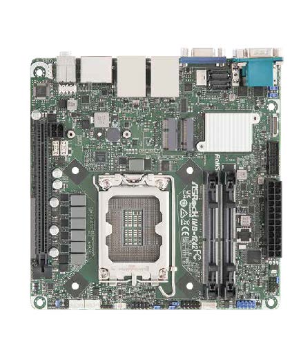 Das ASRock Industrial IMB-1242 ist ein kompaktes Mini-ITX Mainboard mit Intel H610 Chipsatz und LGA1700-Sockel für Intel Core Prozessoren der Serie 2 sowie der 14./13./12. Generation (bis 65 W). Es bietet zwei SO-DIMM-Slots für DDR4-3200-MHz-RAM (bis 64 GB), PCIe x16 Gen4, 2x USB 3.2 Gen2, 2x USB 3.2 Gen1, 4x USB 2.0, M.2 Key E und M.2 Key M (PCIe Gen3 x4 + SATA3) sowie 2x SATA3. Besonderheit ist die klassische Triple-Display-Kombination aus HDMI 2.0b, DisplayPort 1.4a und VGA. Intel I219V (1 GbE) und Realtek RTL8125BG (2,5 GbE), 2 COM-Anschlüsse sowie TPM-Header komplettieren die Ausstattung. Flexible Stromversorgung über ATX (24+4-Pin) und 12V DC-In.