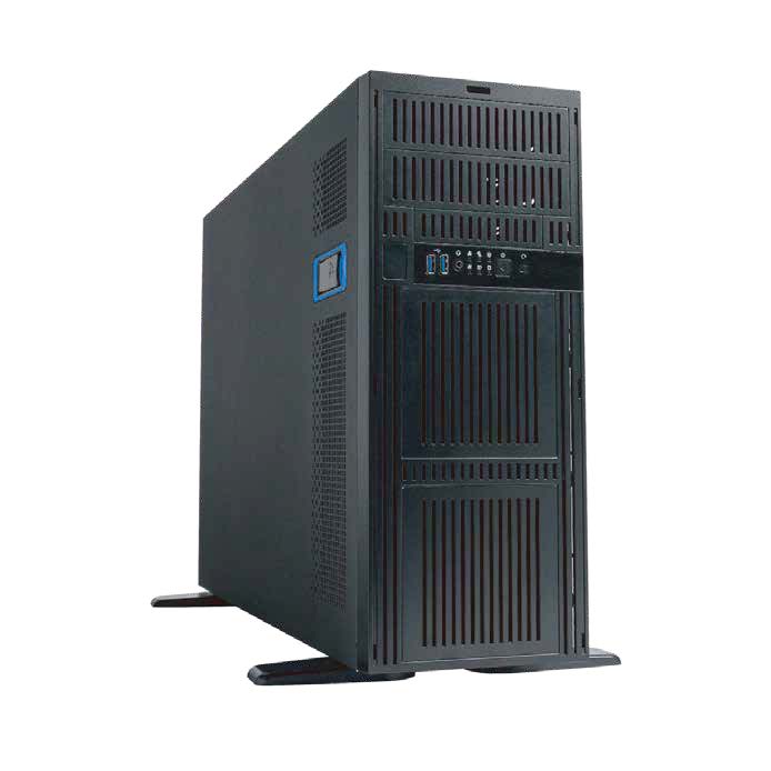 Die iEPF-11000S ist die leistungsstärkste Plattform der iEPF-Serie und richtet sich an anspruchsvollste KI-Edge-Anwendungen. Sie basiert auf Intel® Xeon® W-3500/3400- und W-2500/2400-Prozessoren (Serie) mit Intel® W790-Chipsatz (LGA 4677). Das System bietet acht 288-Pin-ECC-RDIMM/RDIMM-3DS-DDR5-Steckplätze (4400/4800 MHz) mit einer maximalen Kapazität von 2 TB. Acht PCIe-Erweiterungsslots (davon ein PCIe Gen5 x16 für Dual-Slot-Karten, drei PCIe Gen4 x16, ein PCIe Gen4 x8, ein PCIe Gen4 x4) ermöglichen den Betrieb von bis zu vier professionellen Grafikkarten gleichzeitig (NVIDIA RTX 6000/5000/4500/4000/2000 Ada, Intel Arc A770/B580/Pro B60/B50). Zwei Intel 2,5-GbE-LAN-Ports (LAN1 mit vPro) und optional ein Marvell 10-GbE-Port bieten schnelle Netzwerkanbindung. Sechs USB 3.2 Gen2, ein USB 3.2 Gen2x2 (Typ C), acht SATA3-Ports (RAID 0/1/5/10), sechs COM-Ports (RS-232/422/485) sowie 4 GPI/4 GPO stehen zur Verfügung. Das 4U-Tower-/Rack-Gehäuse (602,6 × 175,0 × 438,0 mm) unterstützt optionale Rack-Kits (Ear Handle, Slide Rail, CMA). Das Netzteil leistet 1600 W (115–240 V AC). Intel vPro, VMD RAID und TPM 2.0 sind integriert. AT/ATX-Power-Modi werden unterstützt.